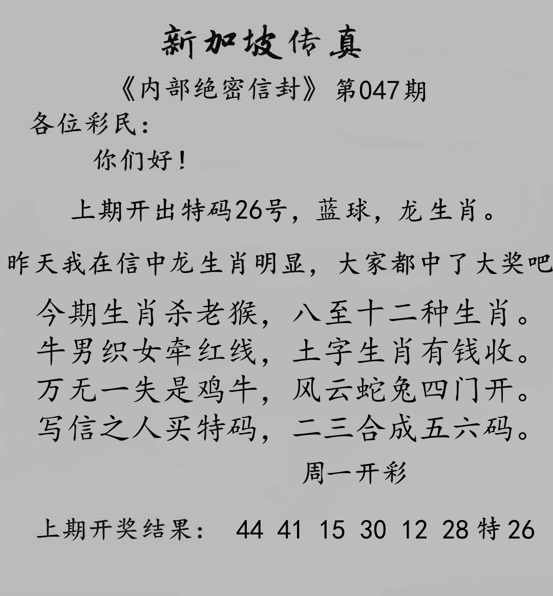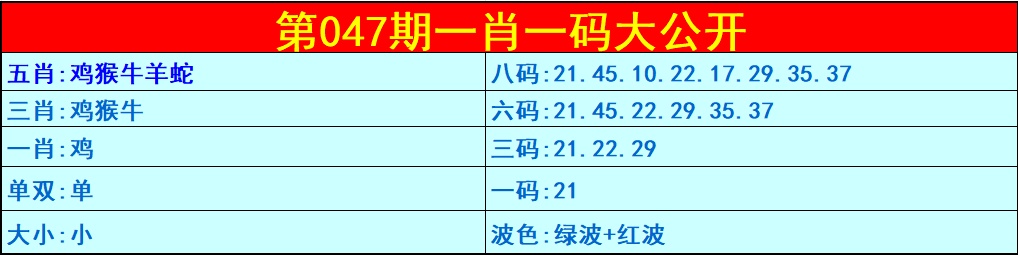 | 047期 | [新加坡六合彩]一肖一码 | 结果 |
